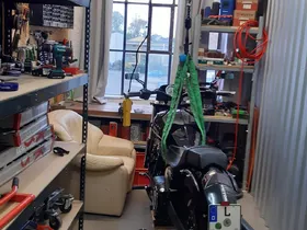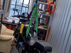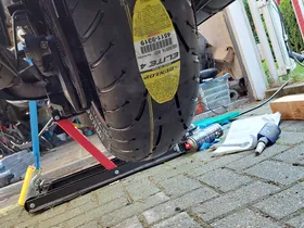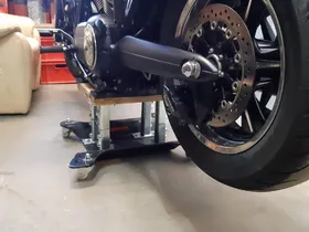 zuerst wollte ich meine Gunner für den Ölwechsel aufbocken. Mich hat jedoch kaum ein Bike-Heber überzeugt. Da ich Zugriff auf einen Gabelstapler habe, dachte ich mir den Hobel einfach hoch zu ziehen. Ich verzweifle jedoch bei der Suche nach geeigneten Punkten, an denen ich den Bock aufhängen kann. Habt ihr eine Idee? Oder gibt es doch einen super Heber, und wie bockt man den Hobel trotz der Rippen unter dem Motor auf. Vielen Dank für eure Unterstützung ![]()