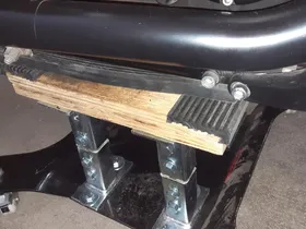 Zum Ausbau Vorderrad lege ich einen durchgehenden Gummimattenstreifen auf die Auflage des Hebers und je ein weiteres Gummistück, etwa 5cm breit und 8cm lang unter die Unterzugsrohre bzw. Rastenverlängerungen. Wichtig, darauf achten das Kabel oder Leitungen nicht gequetscht werden.